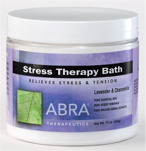 Lavender & Chamomile, Jar Stress Therapy Bath is used to relieve the body of stress, a major cause of illness and disease, with a blend of natural minerals and organic herbals lavender (lavandula officinalis) and chamomile (matricaria recutita). It is well known that stress is a primary cause of disease and illness. There are several ways to view stress. The body grows stronger when subjected to stress, for instance: weight resistance creates muscle density; exposure to adverse weather conditions builds adaptability, practicing public speaking builds confidence, etc. But too much weight, too harsh an environment, or too aggressive an audience can overwhelm a natural balance and actually create a condition detrimental to health. Most of us carry more stress than we know. It is generally found in muscle clenching and muscle contraction on a subconscious level. When you touch your friends shoulder muscles, are they tight? Is it because they were just working out, or are they still tense from an argument yesterday? Stress builds up on an unconscious level. Whatever the causes, a big bill, a road rage, a stubbed toe, it all ends up building stress throughout the body. This restricts the natural flow of fluids and nerve energy just like a kink in a garden hose restricts the water flow. The Stress Therapy Bath removes stress from the body. It appears to work both mechanically and psychologically to provide stress relief.