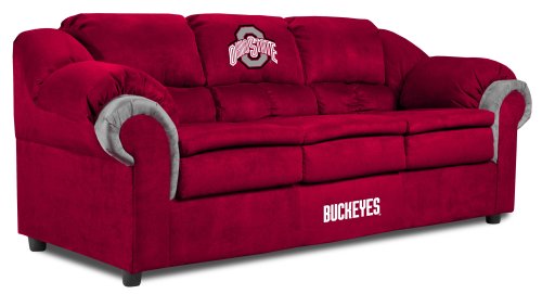 Bring the tailgating party home and watch every Buckeyes game on TV sitting on this soft, comfortable, and durable Buckeyes sofa. Perfect for any family room, living room, or office, you'll be the envy of your friends and your team's most loyal fan. Officially licensed, this sofa features an easy-to-clean microfiber suede fabric in the Buckeyes team colors. Soft poly cushions have an attached Dacron fiber wrap with 1.4 density foam and 32-pound compression. The sofa also features a sturdy engineered hardwood frame and a comfortable, no-sag wire suspension.