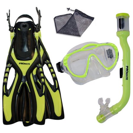 PROMATE Junior Snorkeling Scuba Diving Mask Snorkel Fins w/ Mesh Bag Set for kids, Yellow, S/M Reviews