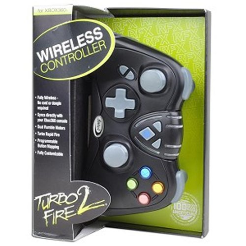 Xbox 360 Turbo Fire 2 Wireless Controller is a fully featured wireless controller for Xbox 360. No cords or dongles are required! The TF 2 includes dual rumble motors and programmable rapid fire functionality along with an integrated headset port for Xbox Live play.